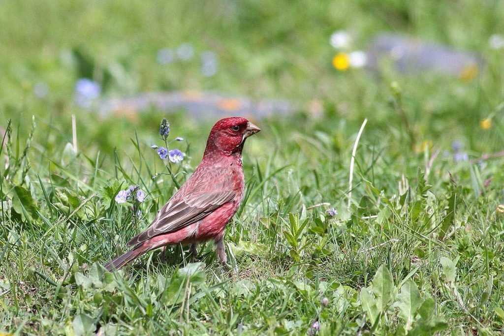 Краснобровая чечевица — обитает в Гималаях, самцы выделяются оперением густого вишнево-красного цвета.