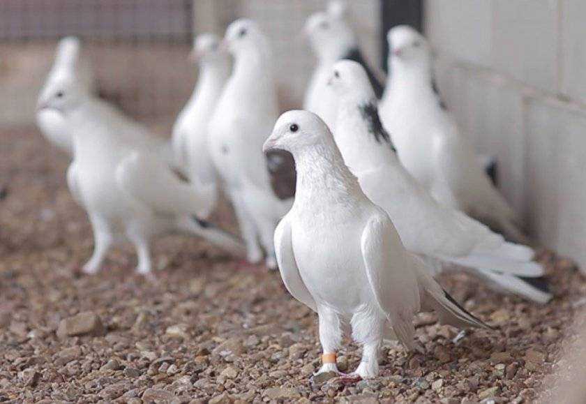 Оперение у них белого цвета. Строение тела пропорциональное, конечности длинные и крепкие. Хорошие способности имеют немецкие птицы. У них укороченный клюв, маленькая голова, длинная шея и высокие конечности. Одним из старейших видов почтарей являются английские. Они хорошо держат дистанцию, прекрасно ориентируются в пространстве. Отличительная особенность особей – кожные выросты на клюве.