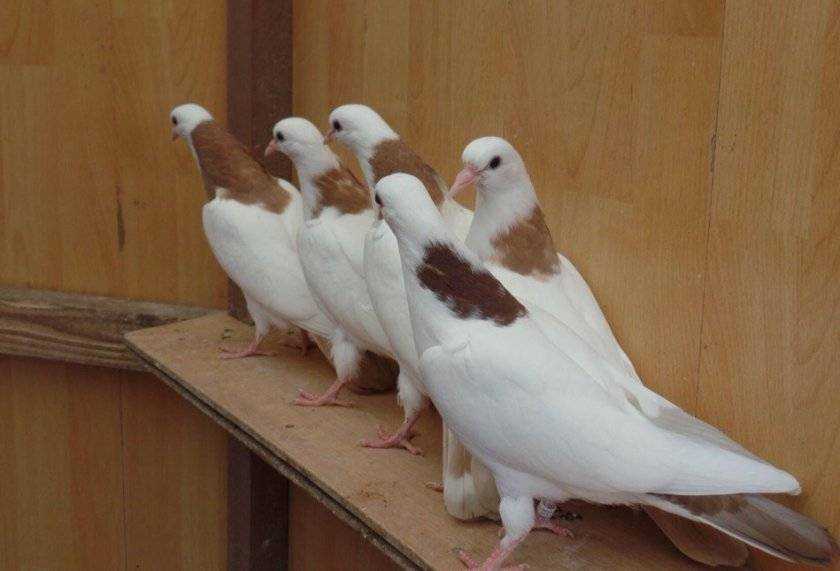 Красотой и грациозностью поражает еще одна разновидность – шейка. Строение тела – веретенообразное, удлиненное, рост – 35 см. Расцветка чаще всего белая, но сзади, на шее есть узор. Он окрашен в черные, красные, сизые или желтые цвета. Есть 2 вида голубей: