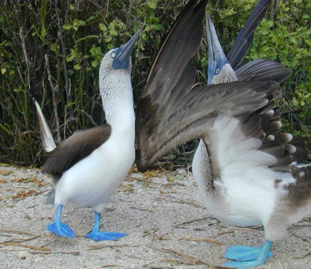 Дальше начинается собственно танец. Самец выделывает интересные па, демонстрируя самке свои ярко-синие лапки
