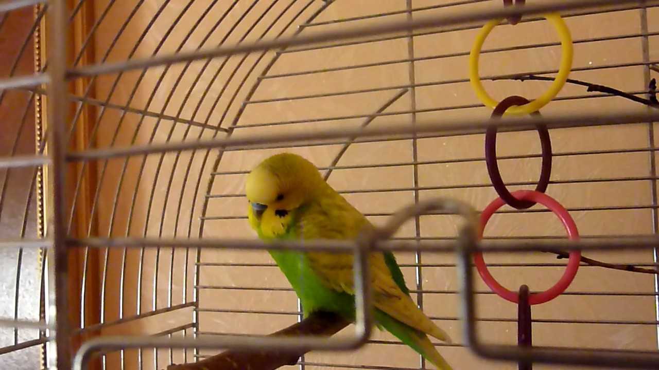 У каждого попугая есть любимое место в клетке, где он предпочитает отдыхать. У одних это кольцо, у других жёрдочка, у третьих качели. Птицы зачастую предпочитают сон в верхней части клетки.
