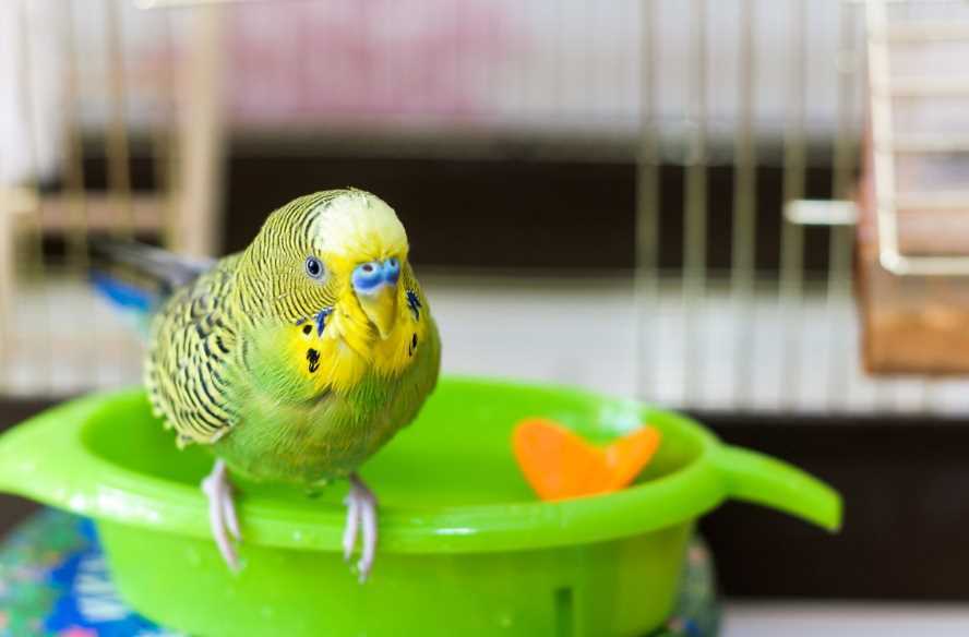 - Воды в емкость набирают на уровень не более 3 см. В глубокой посудине, до краев наполненной водой, попугайчик может погибнуть.