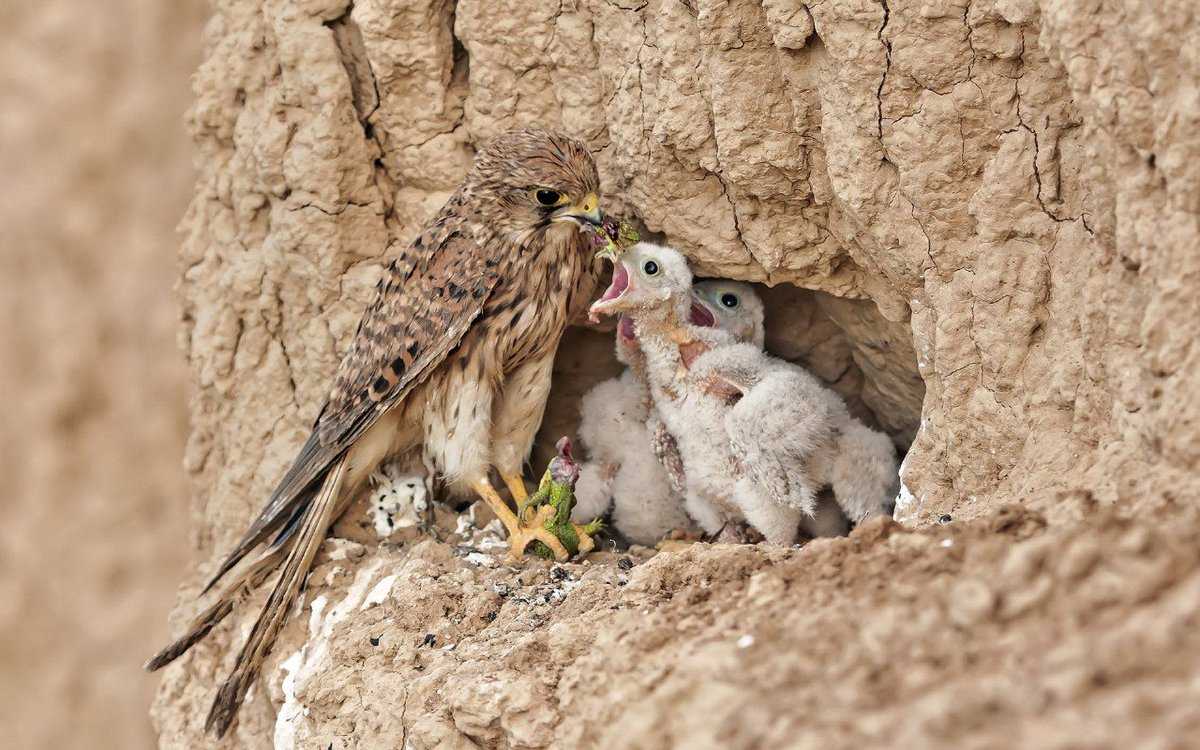 В периоды выращивания потомства таким пернатым питания требуется особенно много, чтобы прокормить свой выводок. Охотятся эти хищные птицы днём, в отличие от большинства соколов. Кстати, их деятельность такого рода пользу приносит немалую.