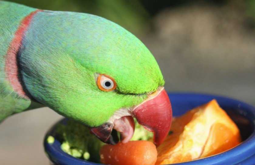 Не менее 40% суточного рациона попугая должны составлять фрукты и овощи, которые нужно хорошо вымыть, порезать и почистить. Каждый фрукт нужно вводить постепенно.