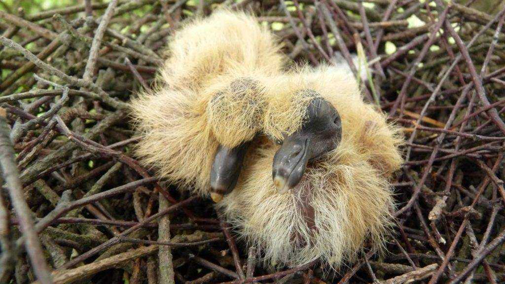 - Как выглядят птенцы: тельце покрывается желто-грязным пушком, который впоследствии становится сероватым. По мере роста происходит оперение, соответственно, изменяется и цветовая гамма.