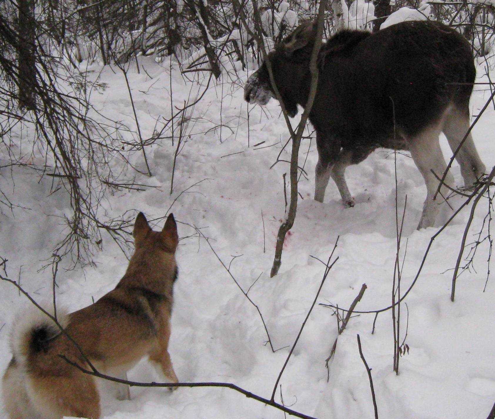 Это уже вершина мастерства. Поэтому, если предстоит охота на лося с лайками, то тренировать нужно псов в два года и старше. Желательно для начала работать в предгорьях или в густом лесу — здесь лось не сможет развить максимальную скорость, да и атаковать собак он не сможет.