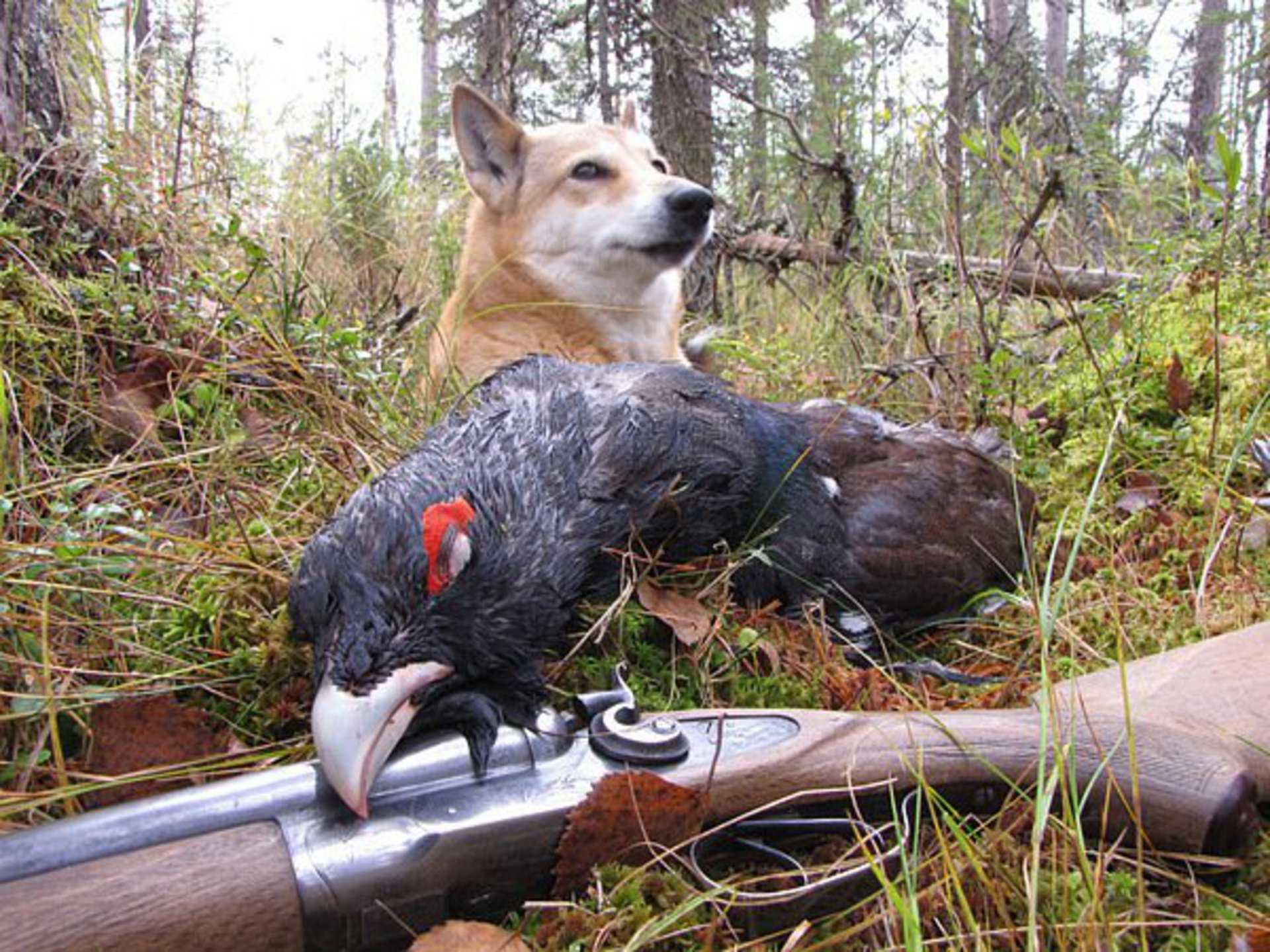 Охоту с лайкой на глухаря лучше начинать в начале осени — это прекрасная возможность научить питомца охотиться на крупную и не опасную добычу. Птицы издают много шума, что дополнительно облегчает ориентирование. Даже молодой и неопытный пес, заслышав его, немедленно бросается вперед и уверенно выводит хозяина в нужную точку.