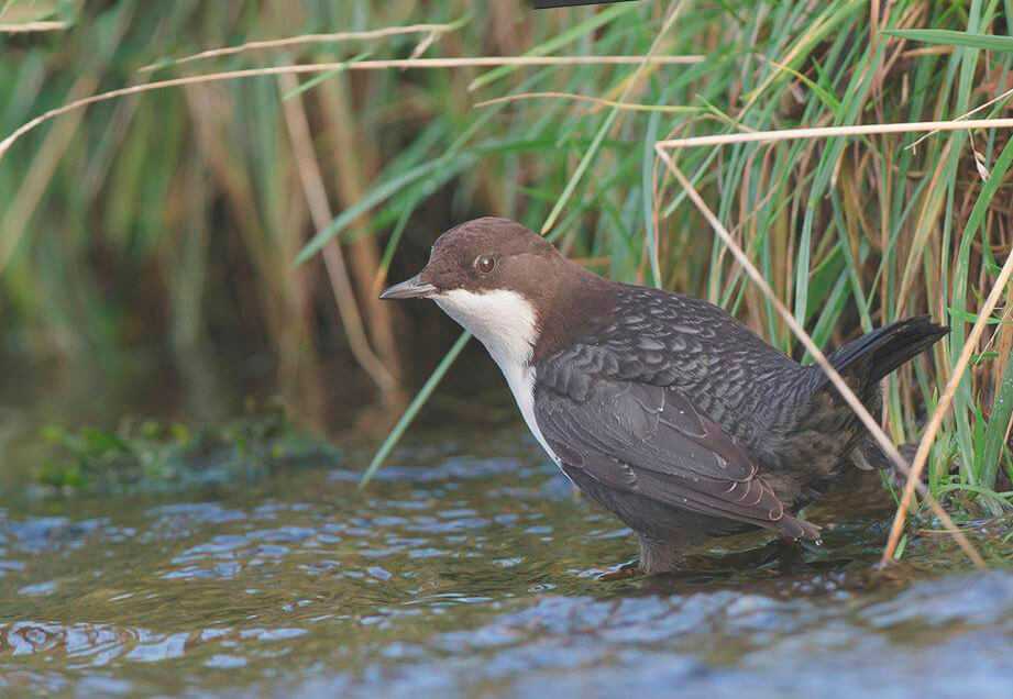 Погрузившись под воду против течения, пташка наклоняется вперед и, расправив крылья, бежит по дну. Закончив свою пробежку она, как бутылочная пробка выныривает на поверхность.