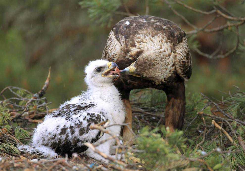 - Если в гнезде вылупляется два птенца, более сильный из них будет в течение 2 месяцев пытаться избавиться от своего брата или сестры. Если тот выживет, дальше они начинают спокойно жить бок о бок друг с другом.