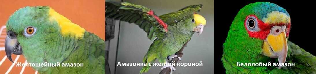 Семейство амазоновых включает в себя несколько видов, которые являются одаренными говорунами. Амазонов легко идентифицировать по преимущественно зеленому оперению с цветовыми вариациями красного, желтого, синего и оранжевого на головах, крыльях и хвостах.