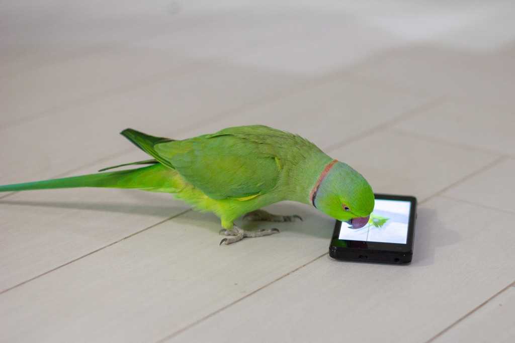 4. Если выбирать между телевизором и смартфоном, то второе подойдет больше для показа видео попугаю. Дело в том, что смартфон легко расположить возле себя и попугай будет вынужден каждый раз справляться со своим страхом перед человеком ради просмотра любимых роликов. Таким образом он будет постепенно привыкать к вам и научится не только говорить, но и доверять вам.