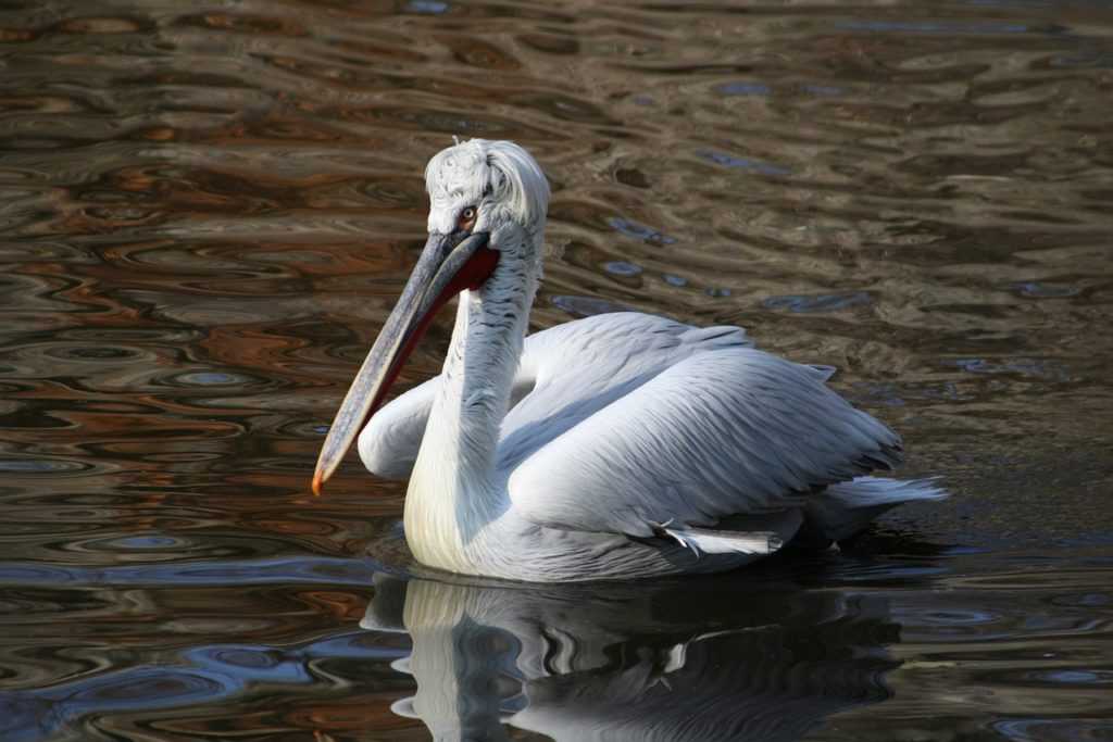 Кудрявый пеликан привлекает внимание кудрями на голове и шеи, которые получаются из длинных перьев. Перья растут только до основания нижней челюсти, поэтому «прическа» сразу бросается в глаза