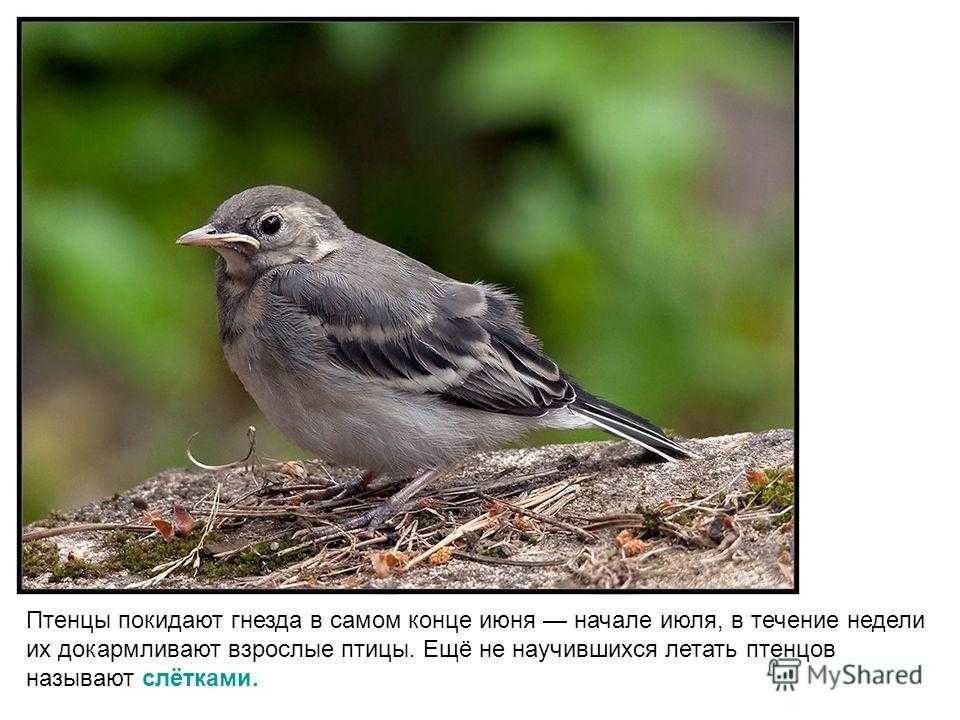 Птенцы покидают гнезда в самом конце июня начале июля, в течение недели их докармливают взрослые птицы. Ещё не научившихся летать птенцов называют слётками.