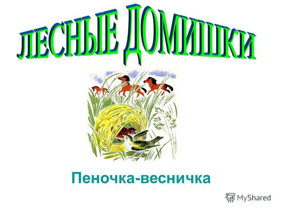 Презентация на тему: » Пеночка-весничка. Пеночка-весничка – (Phylloscopus trochilus). Небольшая скромно окрашенная подвижная птичка размером меньше воробья (масса тела 6-11.» — Транскрипт: