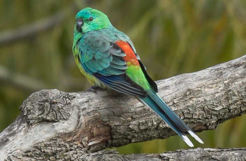 Желтокрылый, златоплечий или квинслендский. У самцов на крыльях, в районе плеч представлены большие золотисто-жёлтые пятна, а в нижней части брюшка – красные. У самок преобладает сероватая окраска, с коричнево-зелёными оттенками. Эти попугаи средних размеров, довольно спокойные.