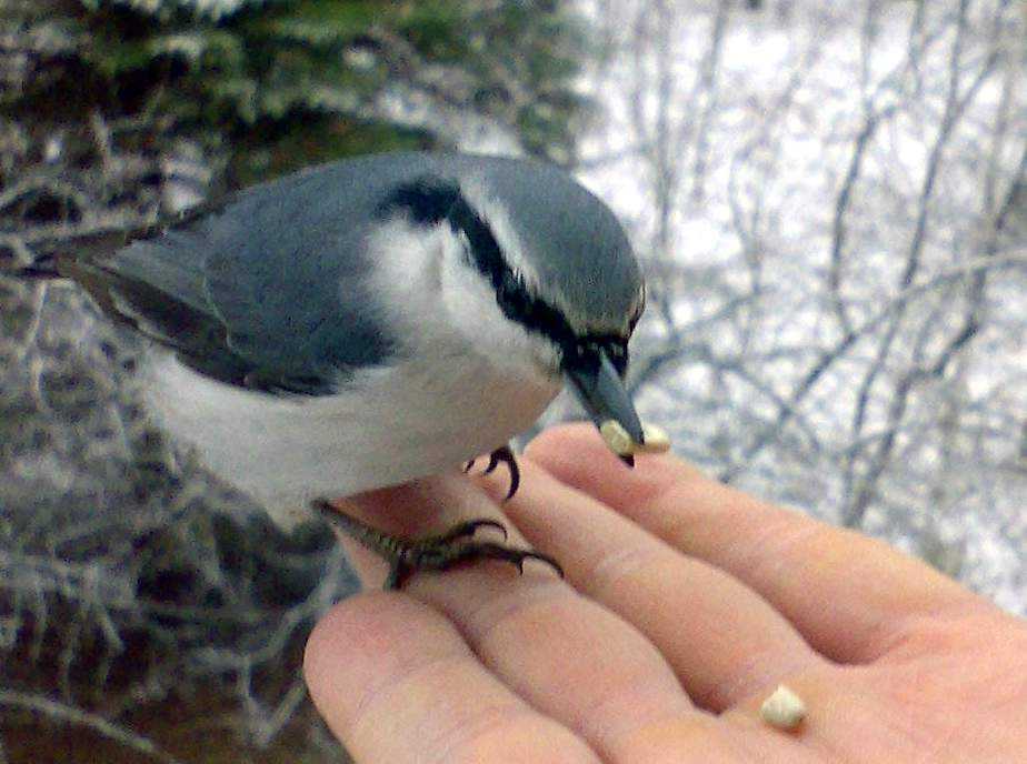 Приручить поползня к человеческим угощениям не составит никакого труда, что позволит рассмотреть эту удивительную птаху в непосредственной близости. Поползень любит зерно и различные злаковые, отруби и сухофрукты.