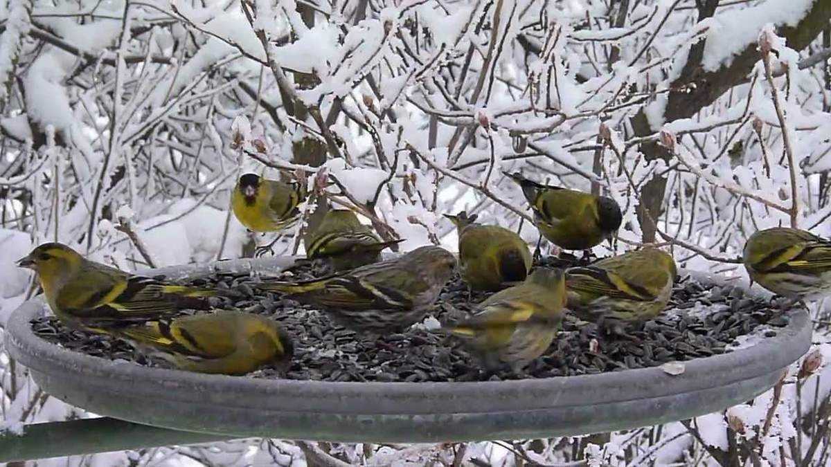 - Не помешает угостить птицу десертом с измельченными семечками подсолнечника. Но, это блюдо лучше ставить отдельно, оно по вкусу не всем птицам.