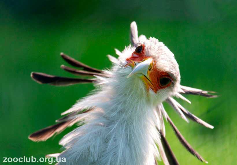 Птицу секретаря можно по праву назвать грозой всех змей, ведь ползучие являются ее любимым лакомством.