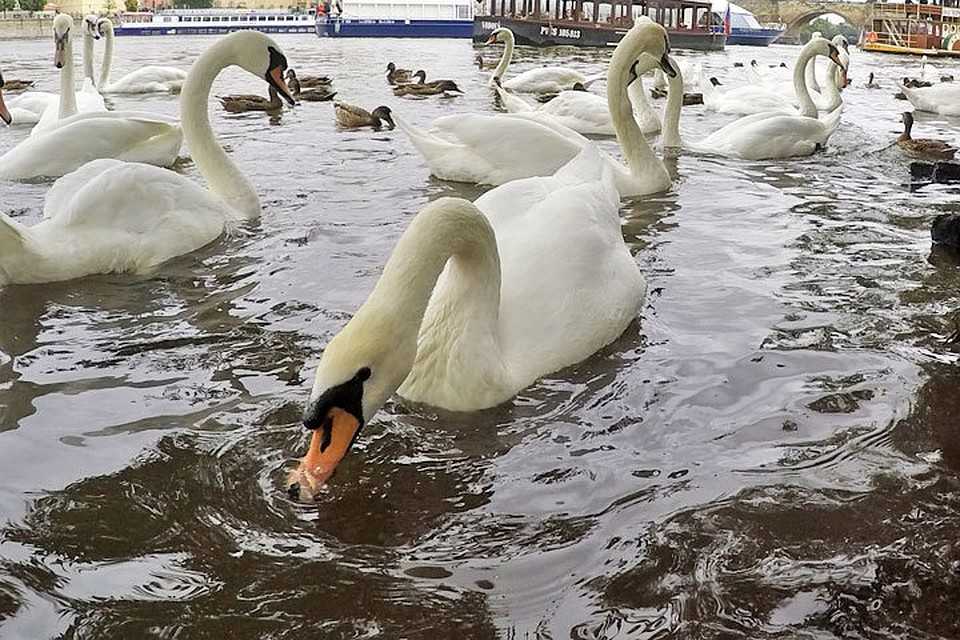Малый лебедь – имеет явные сходства с предыдущим видом птиц, но отличается меньшими размерами и другим окрасом клюва.