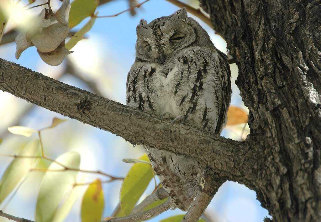 Она занимает удобную позицию на ветке и выжидает добычу. Из-за окраса перышек сова практически не заметна на дереве. Поэтому насекомые, ничего не подозревая, подлетают близко.