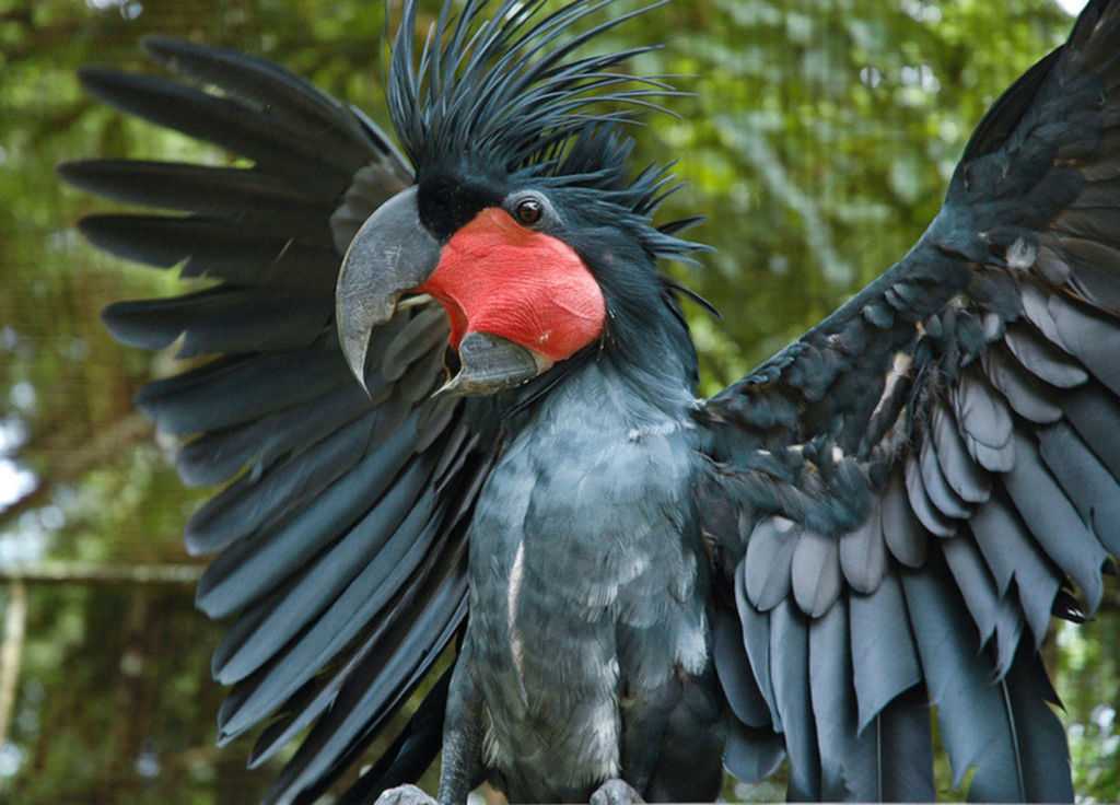 Черный пальмовый какаду славится скверным характером, агрессивностью.