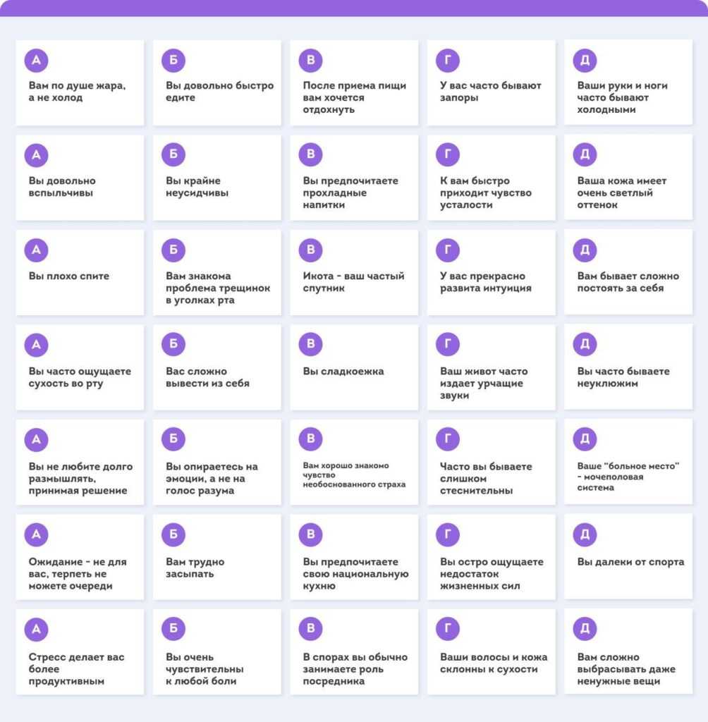 Предлагаем это сделать с помощью нашего простого теста. Посмотрите на таблицу и выпишите те буквы, с утверждениями которых вы согласны.