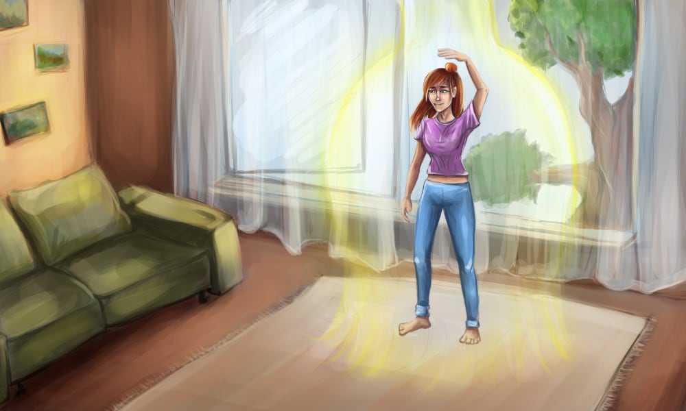 Два начала направляют единый луч энергии, содержащий оба компонента, в сторону практикующего, наполняя его энергией. Избытки свободно выходят из тела, питая и развивая ауру, сияющую вокруг физического тела.