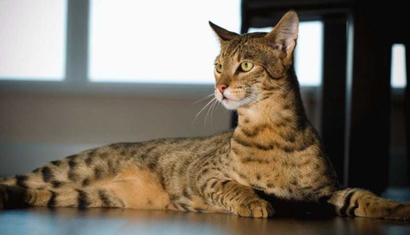 Это одна из рысевидных пород, которая отличается крупными телосложением. Она произошла от диких каракалов – хищных млекопитающих семейства рысей. В отличие от своих диких родственников, одомашненные каракалы имеют чуть меньшие размеры: высота в холке может достигать 50 см, а вес – 11-19 кг, но они все так же имеют длинные кисточки на ушах, короткую густую шерсть с белыми и черными отметинами.