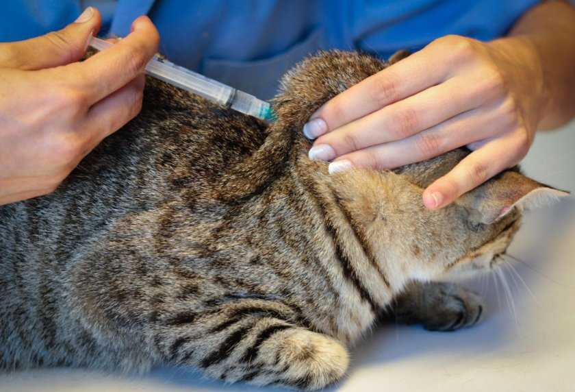 произвести, животное берётся за «шкирку» и крепко удерживается до окончания ввода препарата.