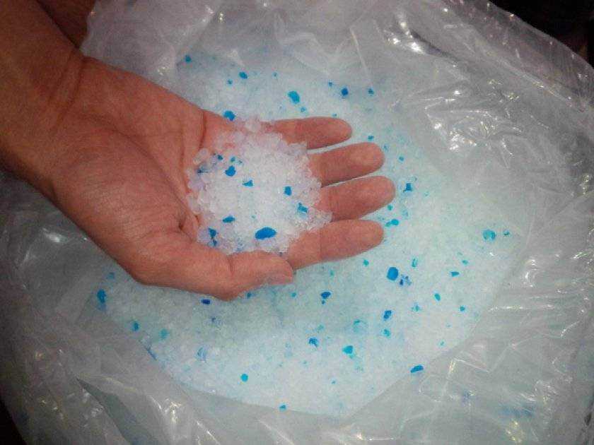- хорошо впитывает влагу: силикагель поглощает не только жидкость, которая на него попадает, а и влагу в воздухе, поэтому с помощью него можно избавить от излишней влажности в ванной комнате или туалете.