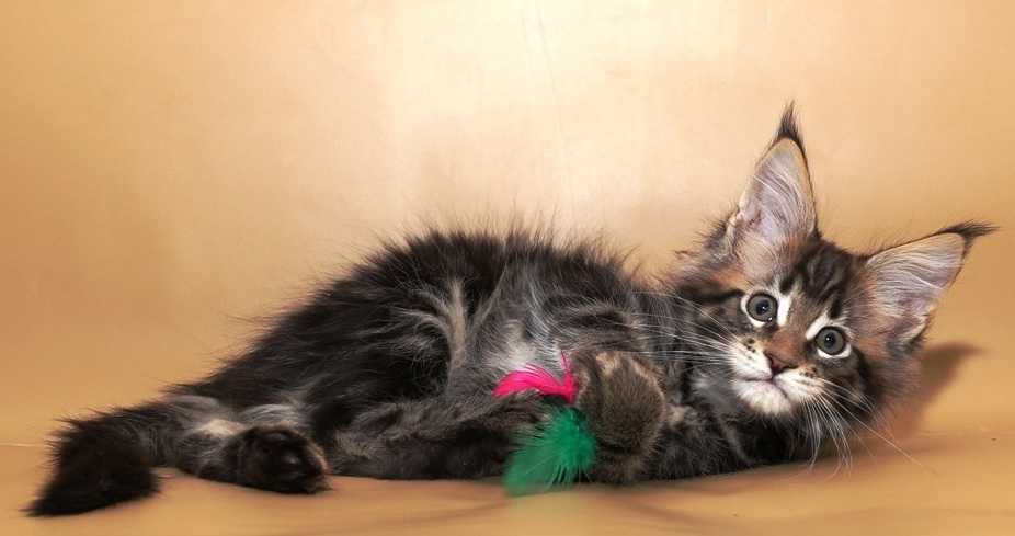 Уход за котенком мейн-куном более сложный, чем за взрослой особью. Пока питомец маленький, хозяин должен тщательно подбирать рацион, контролировать вес животного, чтобы вовремя выявить нарушения развития.