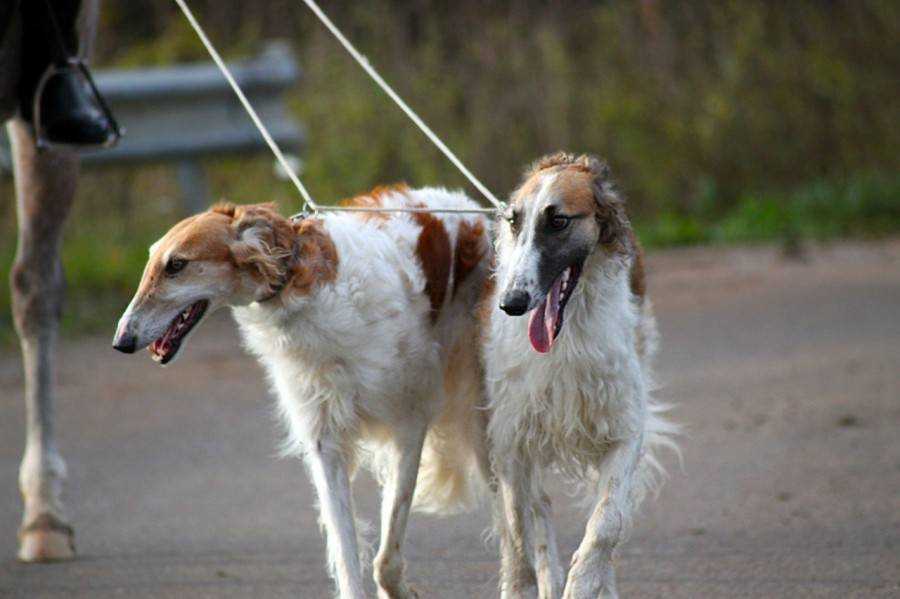 Не стоит отпускать борзую с поводка на прогулке, чтобы от её зубов не пострадали мелкие собаки и кошки. Спускать с поводка собаку можно только на специальной огороженной площадке или на открытой местности в селе.