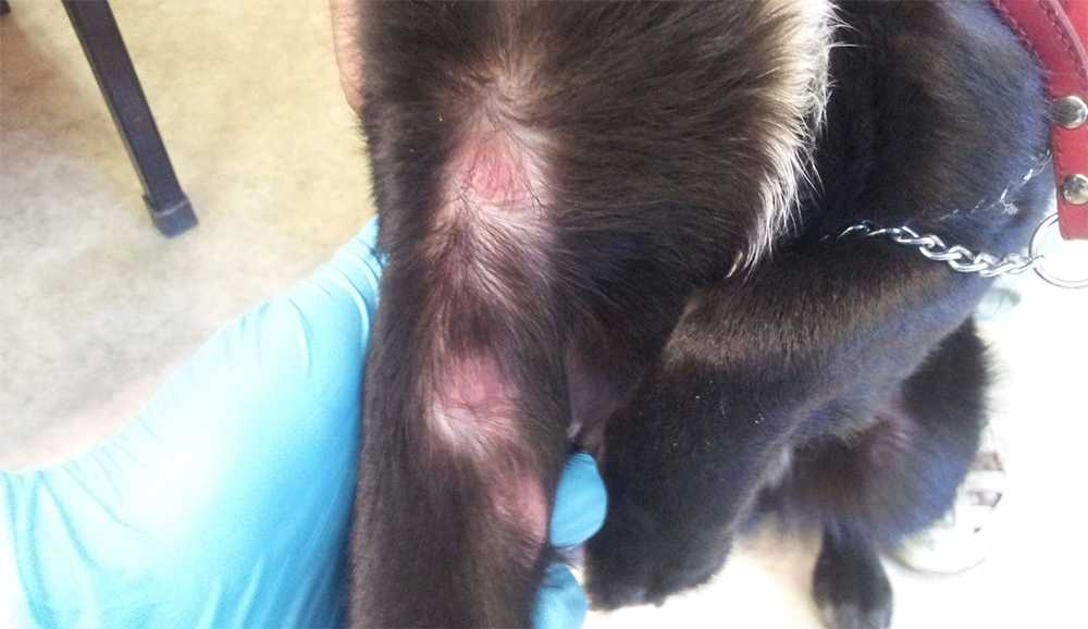 Симптомы поражения собак грибком сильно зависят от вида, вызвавшего патологию. Даже в группе кожных инфекций клиническая картина не всегда однотипная. На фото показан грибок у собаки, симптомы которого имеют местное проявление. Клиническая картина дерматофитии: