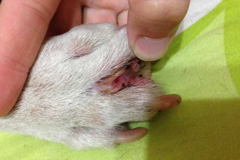 | Внутренние заболевания, такие как опухоли поджелудочной железы | Сопровождаются воспалением лап и появлением на них язв. |