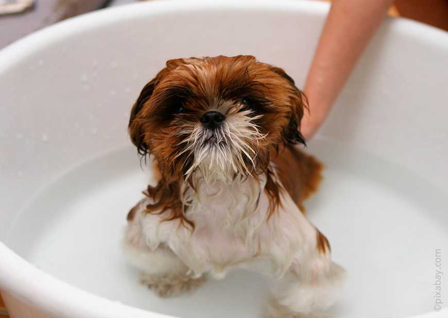 Во всех остальных случаях песика можно не купать. Достаточно только мыть или протирать загрязнившиеся места – лапы после прогулки или морду после еды.