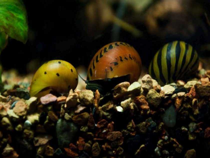 К этой группе относят различные виды улиток. Одни из них питаются водорослями, другие – мелкой живностью, в том числе своими собратьями, присутствие которых в аквариуме нежелательно.