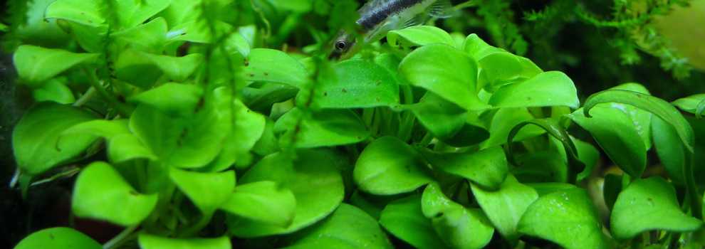 Аквариумисты предпочитают называть гидрофит по-другому — «Карликовый анубиас». Вместо роста в высоту это растение застилает дно аквариума. Его листья формируют плотный слой зелени, а мощные корни не предназначены для углубления в грунт. Вынослив, легко адаптируется к любым изменениям.
