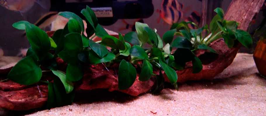 При этом важно регулярно обновлять воду в резервуаре. Немаловажным является освещение, которое не должно быть избыточным, потому как анубиас в аквариуме может быстро обрасти водорослями и погибнуть