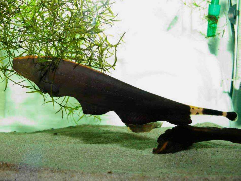 - Аптеронот (он же черный нож или черная ножелетка) — донная рыбка с вытянутой формой тела и необычным плавником вдоль всего брюха. Такой плавник позволяет аптероноту плавать во всех направлениях