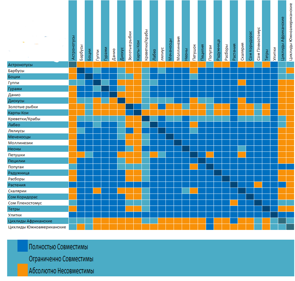 Ключевое правило – ориентироваться на схожие условия содержания по температуре, жесткости и кислотности воды. Если подселить соседей из другого ареала обитания, можно погубить одно из семейств.