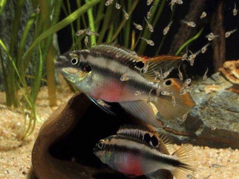 Для молодой пары попугайчиков пельвикахромисов достаточно аквариума средних размеров от 70 л. Для содержания группы пельвикахромисов подберите емкость от 150 л. Обязательна крышка, чтобы рыбки не выпрыгнули из воды. А также попугаям нужно большое количество укрытий: