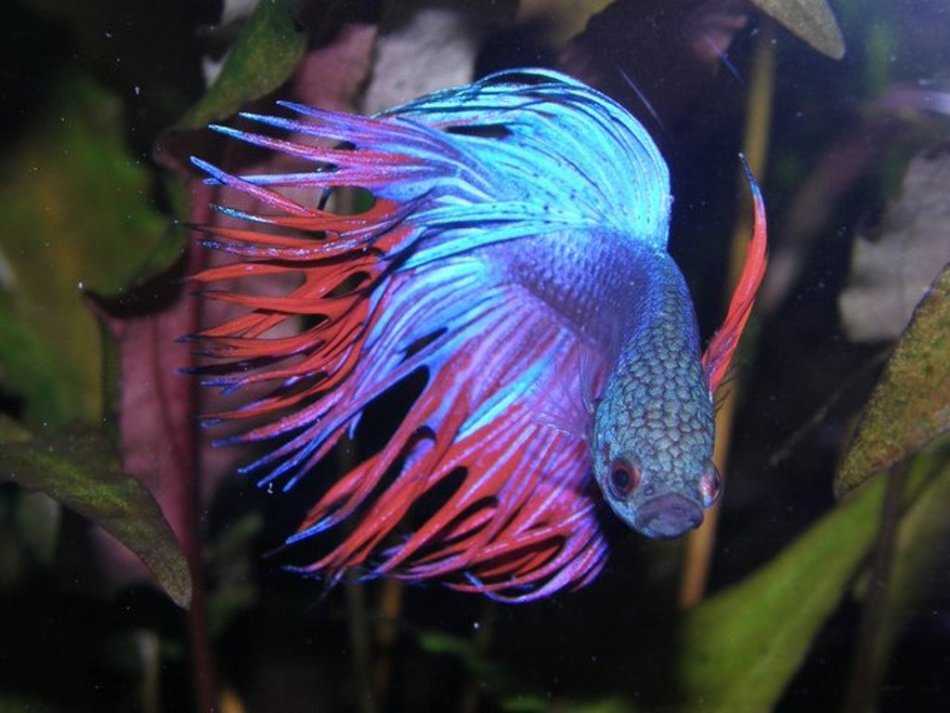 Сиамский петушок — поистине украшение любого аквариума с мирными обитателями. Единственное, что расстраивает — в одном аквариуме может жить только один петушок-самец. Эти рыбы крайне агрессивны к мужским представителям своего вида, отсюда и часто встречающееся название «бойцовая рыбка». Вырастают они около 5-6 см.