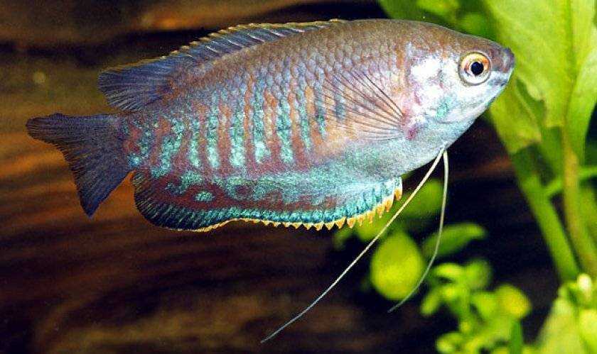 Одни из самых популярных аквариумных обитателей по всему миру известны своим необычным внешним видом. Грудные плавники гурами выглядят как длинные усы, которые являются органом осязания, с их помощью они ощупывают корм и все, что их окружает.
