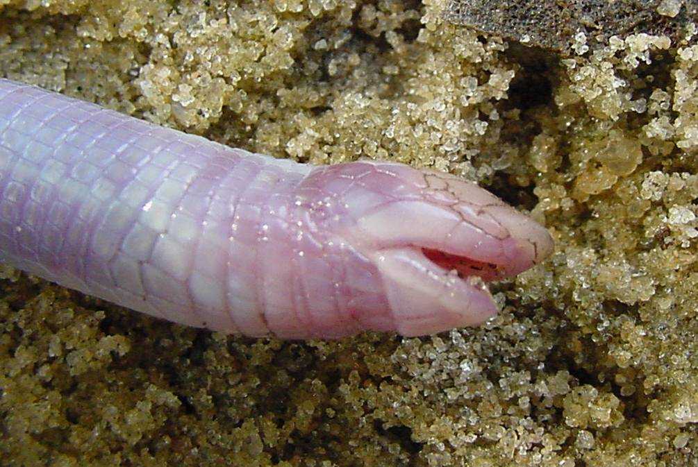 Рот червеобразной ящерицы, похожей на змею
