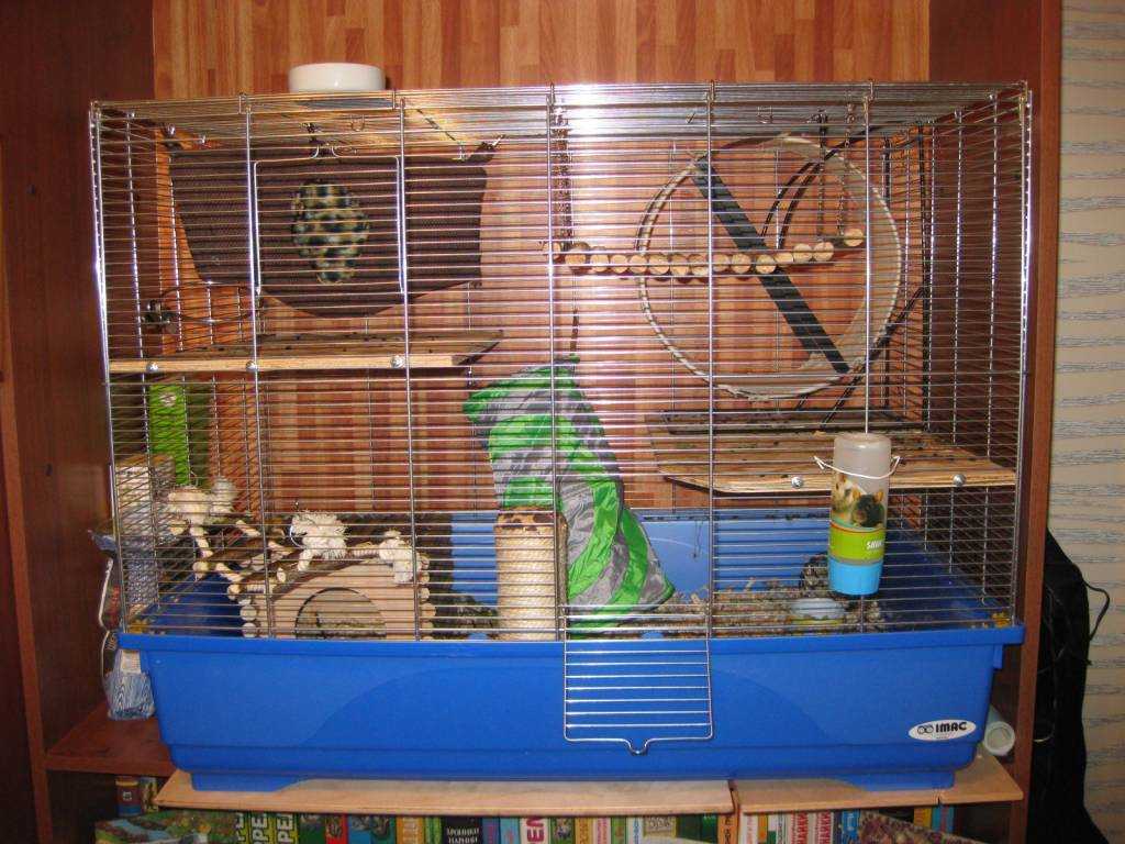 Клетку размещать лучше на уровне стола, так, чтобы до нее не могли добраться кошки, если они есть в доме, подальше от батареи и от окна. Эти зверьки не любят сквозняков, но при этом подвержены тепловому удару. В холода лучше всего обогреет клетку обычная лампа накаливания.
