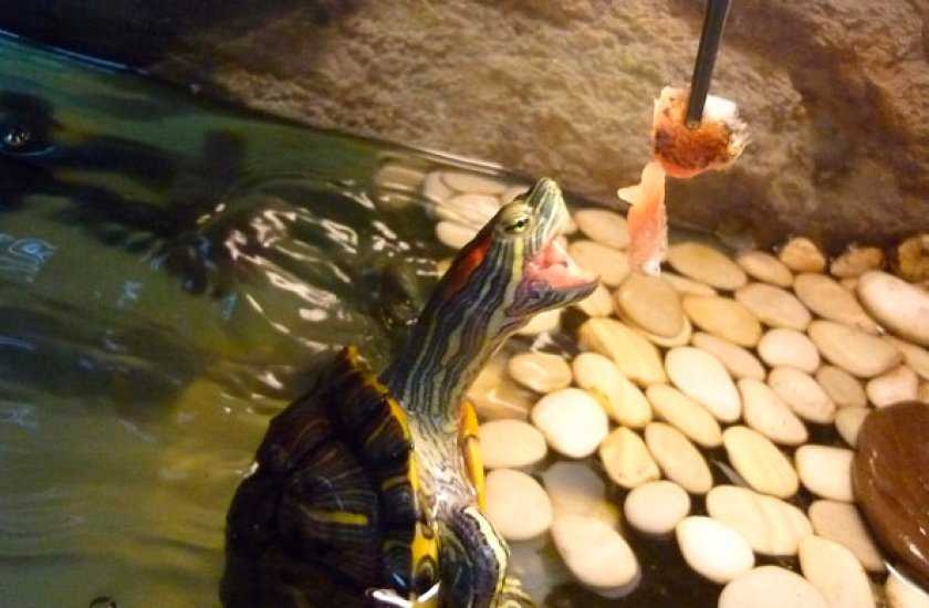 Все морепродукты, а также рыбу черепаха может есть только в сыром виде, термически обработанную пищу не давать;
