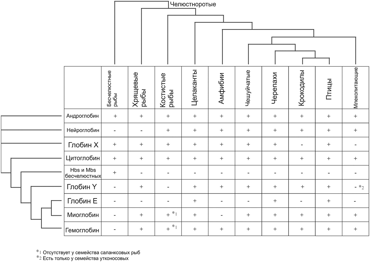 - функции глобина Y (GbY) определить достаточно трудно, так как пока недостаточно изучены особенности его синтеза и его таксономическое распределение, хотя известно, что он отсутствует у большинства млекопитающих;