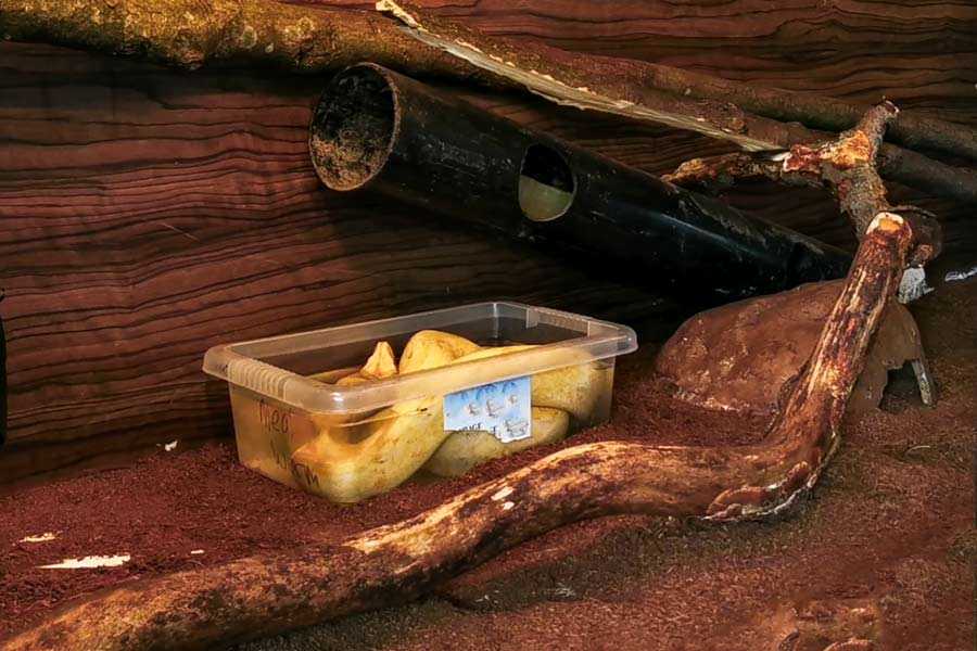 Каждой змее необходимо темное укрытие, для этого подходят полые стволы деревьев, перевернутые куски коры, можно использовать темную пластиковую коробку со сделанным входом.