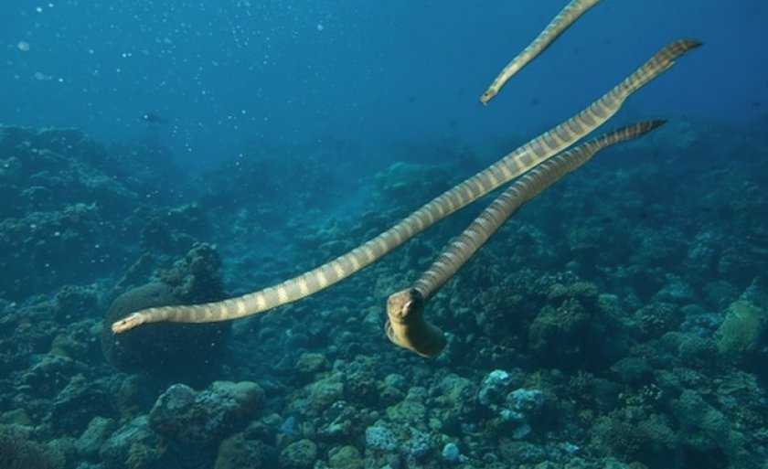 Морские змеи живут в теплых тропических водах Индийского и Тихого океанов.