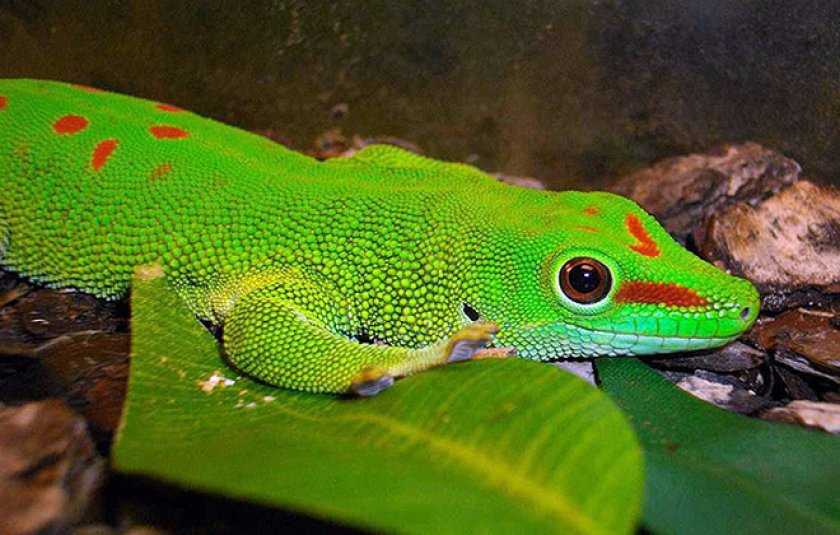 Фельзума. Это дневные ящерицы, имеют красивейший окрас. Однако они совершенно не контактны, никогда не будут признавать человека. Зато очень интересно наблюдать за их передвижением по вертикальной поверхности. Беря домой такое животное, следует помнить, что ему потребуется установить в террариуме ультрафиолетовую лампу, придется постоянно следить за уровнем влажности и даже давать витамины и кальций.